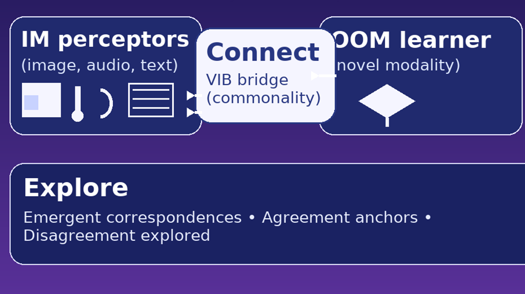 The world is understood from various modalities, such as appearance, sound, language, etc. Since each modality only partially represents objects in a certain physical meaning, leveraging additional ones is beneficial in both theory and practice. However, exploiting novel modalities normally requires cross-modal pairs corresponding to the same instance, which is extremely resource-consuming and sometimes even impossible, making knowledge exploration of novel modalities largely restricted. To seek practical multi-modal learning, here we study Out-of-Modal (OOM) Generalization as an initial attempt to generalize to an unknown modality without given instance-level modal correspondence. Specifically, we consider Semi-Supervised and Unsupervised scenarios of OOM Generalization, where the first has scarce correspondences and the second has none, and propose connect & explore (COX) to solve these problems. COX first connects OOM data and known In-Modal (IM) data through a variational information bottleneck framework to extract shared information. Then, COX leverages the shared knowledge to create emergent correspondences, which is theoretically justified from an information-theoretic perspective. As a result, the label information on OOM data emerges along with the correspondences, which help explore the OOM data with unknown knowledge, thus benefiting generalization results. We carefully evaluate the proposed COX method under various OOM generalization scenarios, verifying its effectiveness and extensibility.