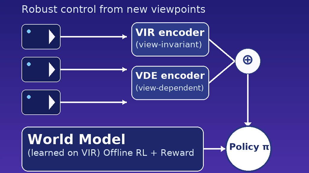 Robotic manipulation tasks often rely on visual inputs from cameras to perceive the environment. However, previous approaches still suffer from performance degradation when the camera’s viewpoint changes during manipulation. In this paper, we propose ReViWo (Representation learning for View-invariant World model), leveraging multi-view data to learn robust representations for control under viewpoint disturbance. ReViWo utilizes an autoencoder framework to reconstruct target images by an architecture that combines view-invariant representation (VIR) and view-dependent representation. To train ReViWo, we collect multi-view data in simulators with known view labels, meanwhile, ReViWo is simutaneously trained on Open X-Embodiment datasets without view labels. The VIR is then used to train a world model on pre-collected manipulation data and a policy through interaction with the world model. We evaluate the effectiveness of ReViWo in various viewpoint disturbance scenarios, including control under novel camera positions and frequent camera shaking, using the Meta-world & PandaGym environments. Besides, we also conduct experiments on real world ALOHA robot. The results demonstrate that ReViWo maintains robust performance under viewpoint disturbance, while baseline methods suffer from significant performance degradation. Furthermore, we show that the VIR captures task-relevant state information and remains stable for observations from novel viewpoints, validating the efficacy of the ReViWo approach.