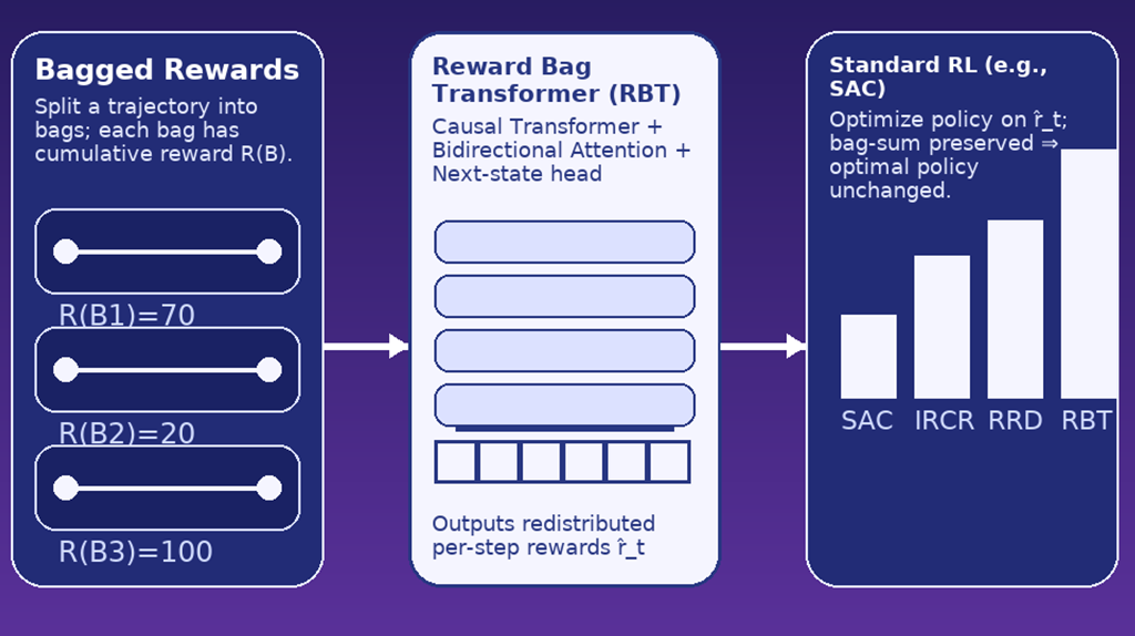 In Reinforcement Learning (RL), it is commonly assumed that an immediate reward signal is generated for each action taken by the agent, helping the agent maximize cumulative rewards to obtain the optimal policy. However, in many real-world scenarios, designing immediate reward signals is difficult; instead, agents receive a single reward that is contingent upon a partial sequence or a complete trajectory. In this work, we define this challenging problem as RL from Bagged Reward (RLBR), where sequences of data are treated as bags with non-Markovian bagged rewards, leading to the formulation of Bagged Reward Markov Decision Processes (BRMDPs). Theoretically, we demonstrate that RLBR can be addressed by solving a standard MDP with properly redistributed bagged rewards allocated to each instance within a bag. Empirically, we find that reward redistribution becomes more challenging as the bag length increases, due to reduced informational granularity. Existing reward redistribution methods are insufficient to address these challenges. Therefore, we propose a novel reward redistribution method equipped with a bidirectional attention mechanism, enabling the accurate interpretation of contextual nuances and temporal dependencies within each bag. We experimentally demonstrate that the proposed method consistently outperforms existing approaches.